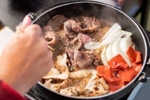 かの食通であり、芸術家の北大路魯山人は従来の甘いすき焼きが好みではく、甘くないレシピを考案しました。