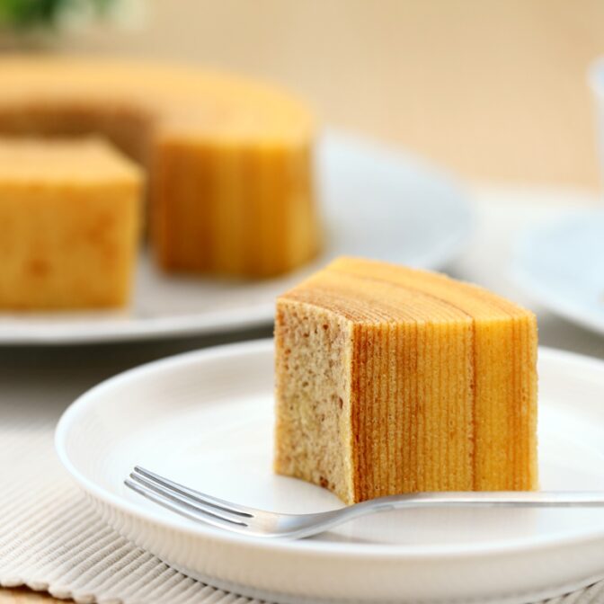 米粉を使って丁寧に焼きあげた、しっとりもっちり食感のバームクーヘン。ローマッセを加えた豊かでコクのある仕上がりです。
