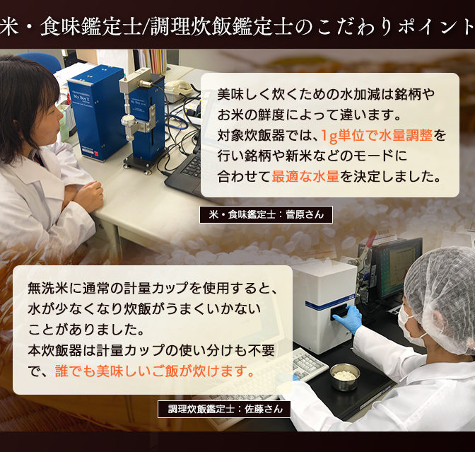 最適な水量と火力で美味しく炊き上げる、米屋の旨み銘柄量り炊きIHジャー炊飯器です。こだわり炊き分け:調理メニュー(おむすび、冷凍ご飯、丼、カレー、すし飯、食物繊維米)に合わせて最適なご飯を炊き分けます。炊飯メニューが7メニュー(無洗米、白米、炊き込み、おかゆ、玄米、煮込/蒸し、発酵)と5つのモード(銘柄炊き分け、こだわり炊き分け、新米、省エネ、早炊き)があります。かたさ調節機能:3段階のかたさ調節(やわらか/標準/かため)ができます。2層の極厚火釜で釜全体を一気に加熱して炊き上げます。タイマーを使って炊き上がり時刻を予約することができます。